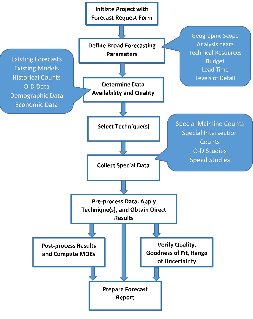 The figure below summarizes the major steps in the project-level traffic forecasting process.